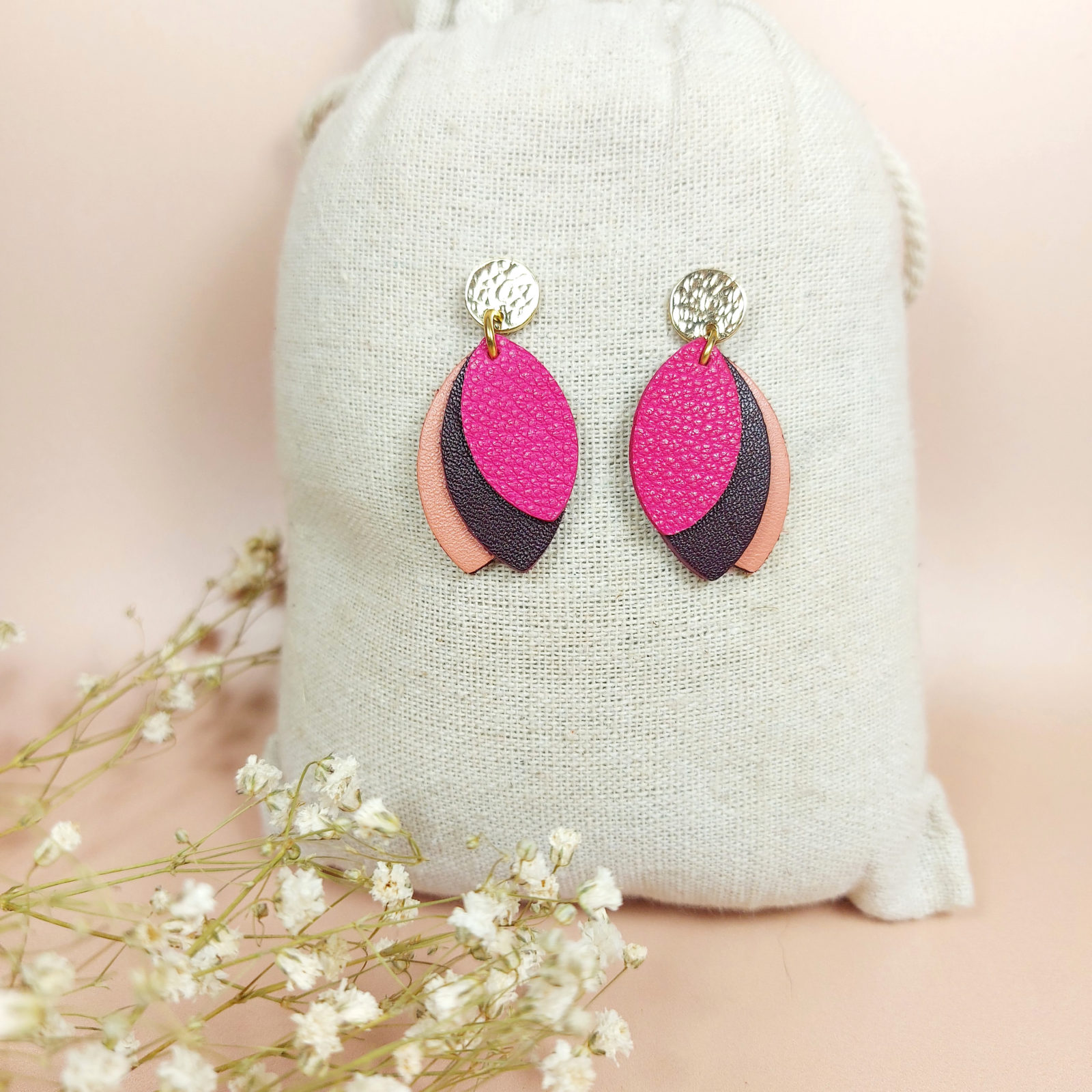 Vous cherchez un bijou léger et ultra-féminin ? Ces boucles d’oreilles en cuir fuchsia et rose sont de vraies pépites pour donner de la couleur à votre tenue.