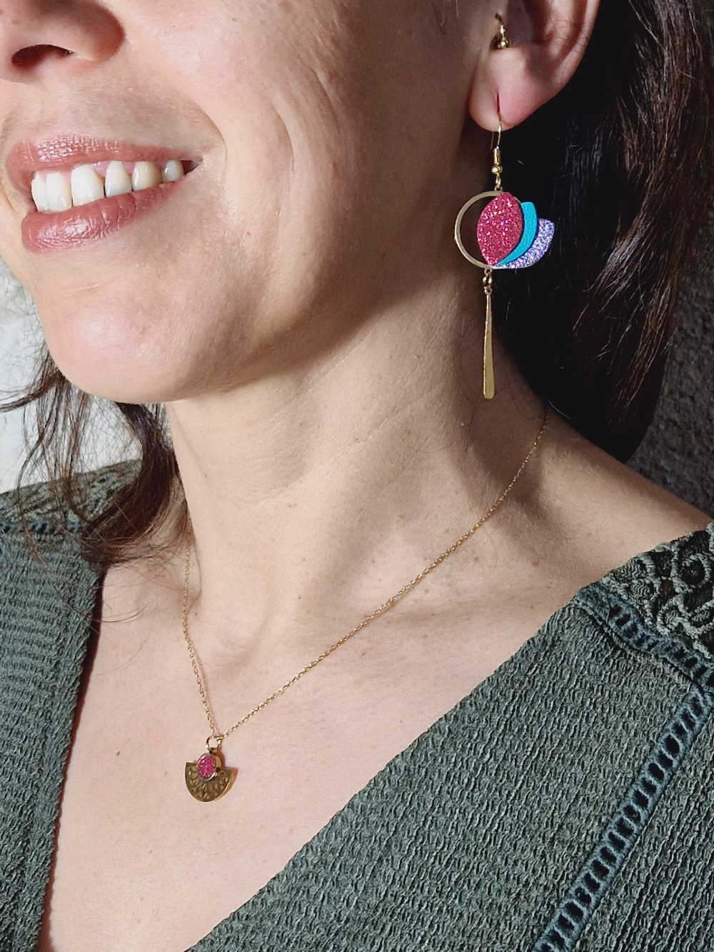 (Et pour ne rien gâcher au plaisir, je fabrique ces boucles d'oreilles en cuir rose avec amour en France dans mon atelier en Deux-Sèvres!)