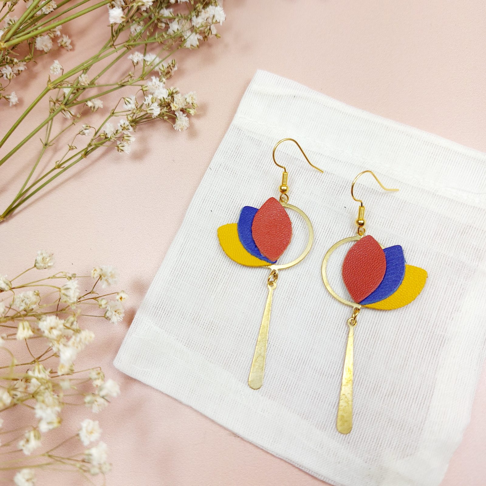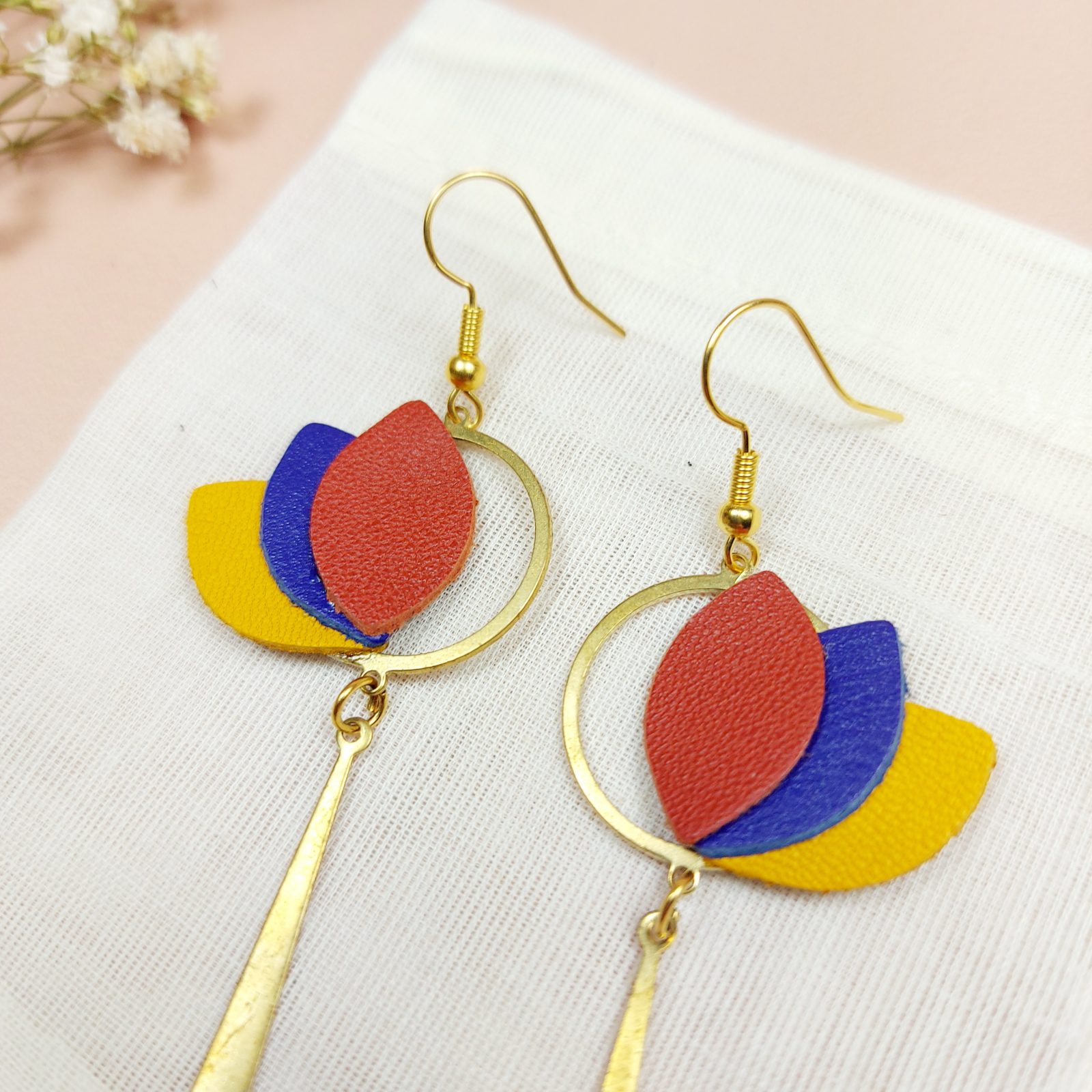 Mettez de la couleur dans votre vie ! Ces boucles d’oreilles colorées en cuir viendront égayer vos tenues en été comme en hiver. Fabrication française. Démarche écoresponsable.