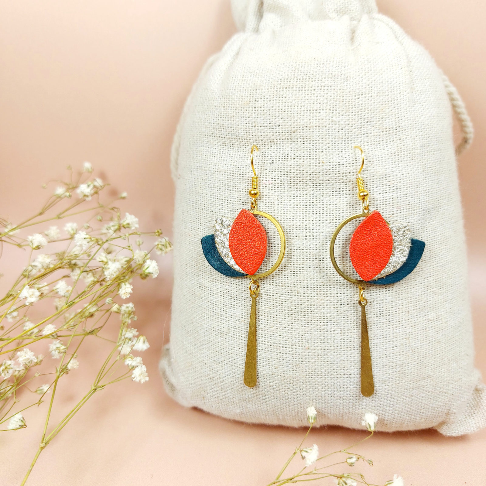 Boucles d’oreilles colorées en cuir pour une journée éclatante. Démarche écoresponsable. Hypoallergéniques. Fabrication artisanale française.