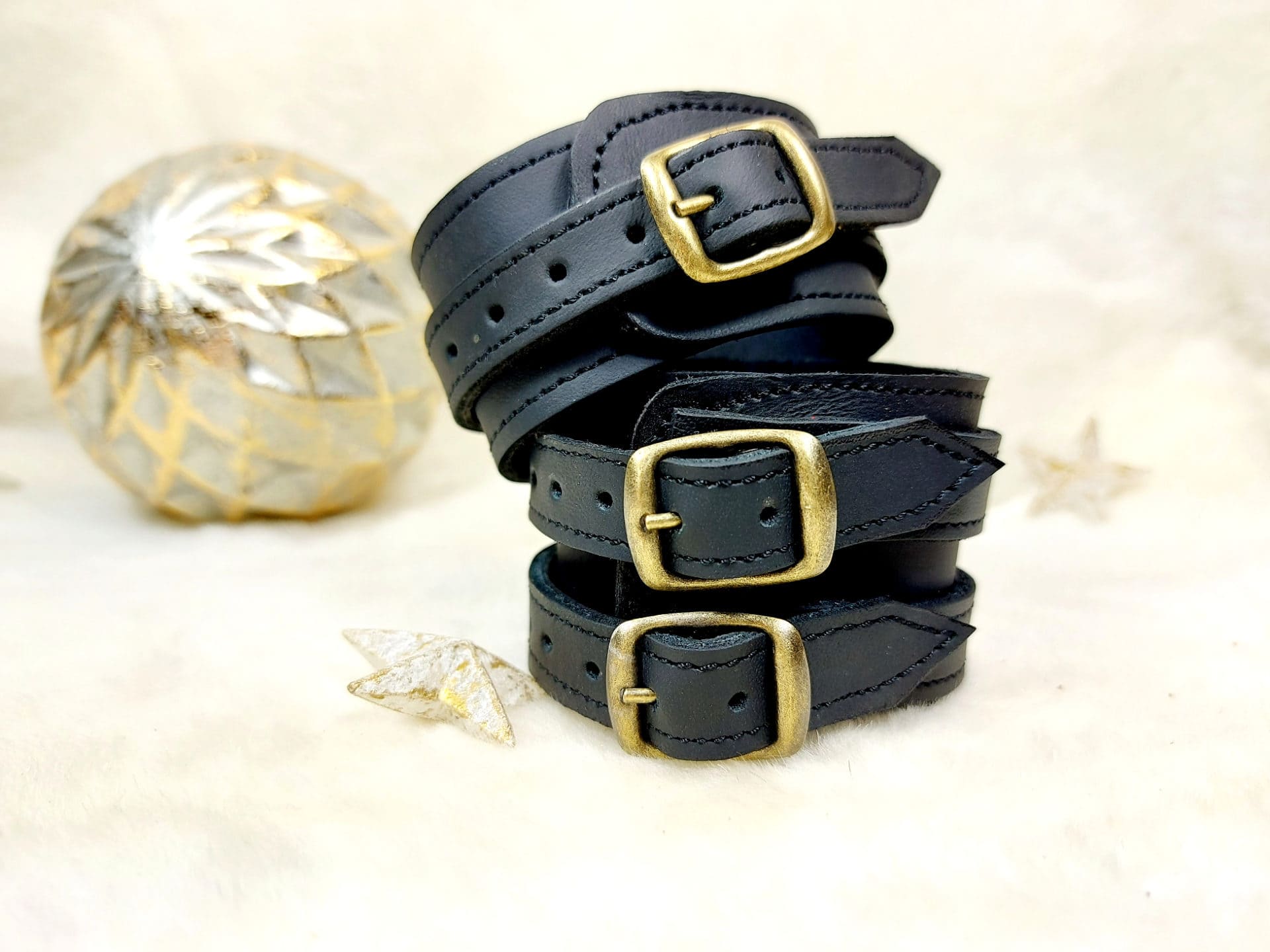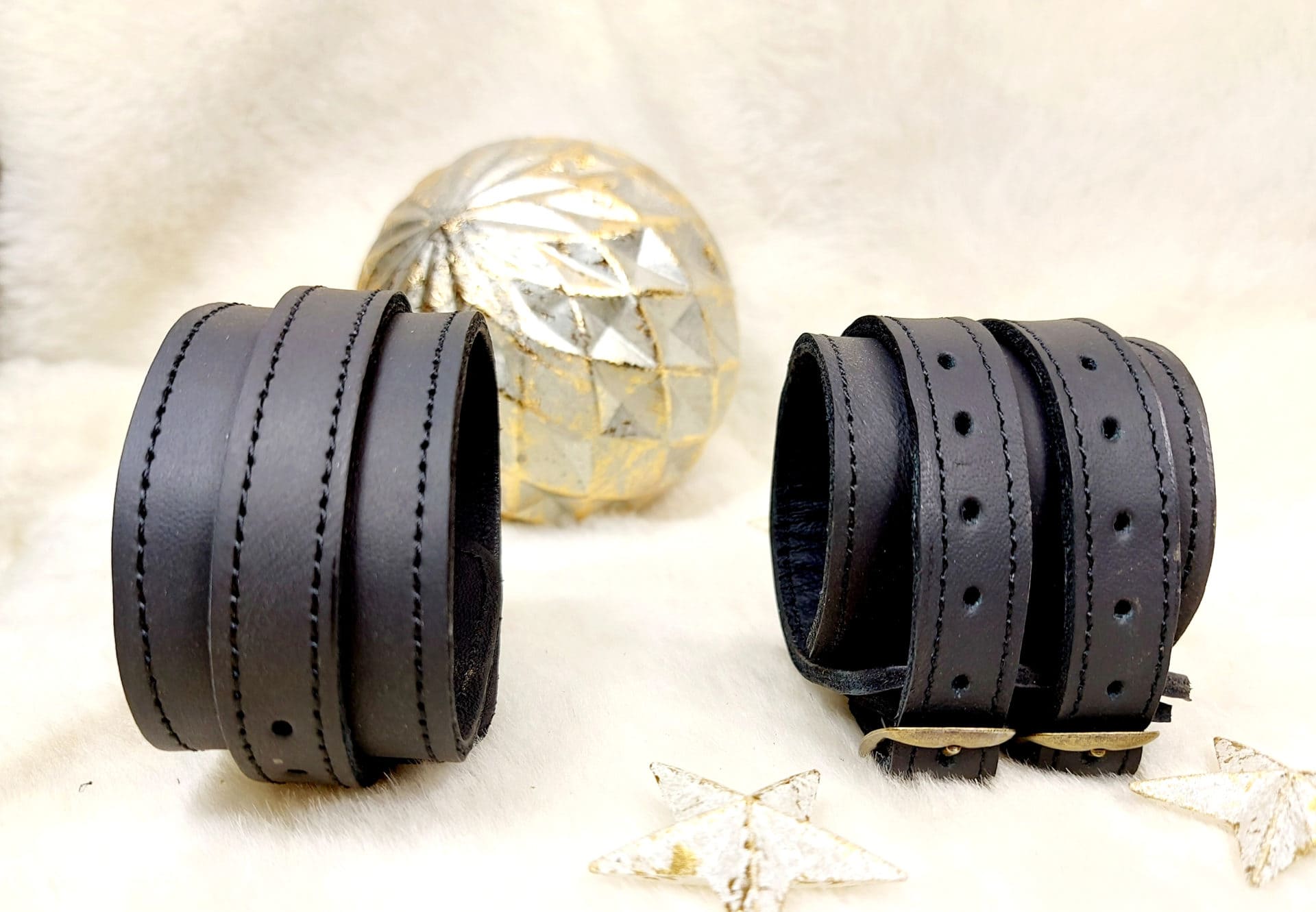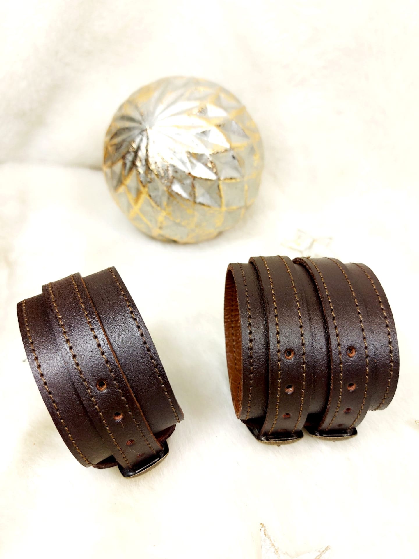 Le cuir servant de doublure peut être marron ou noir ou blanc selon le stock, mais il ne se voit pas une fois le bracelet attaché au poignet.