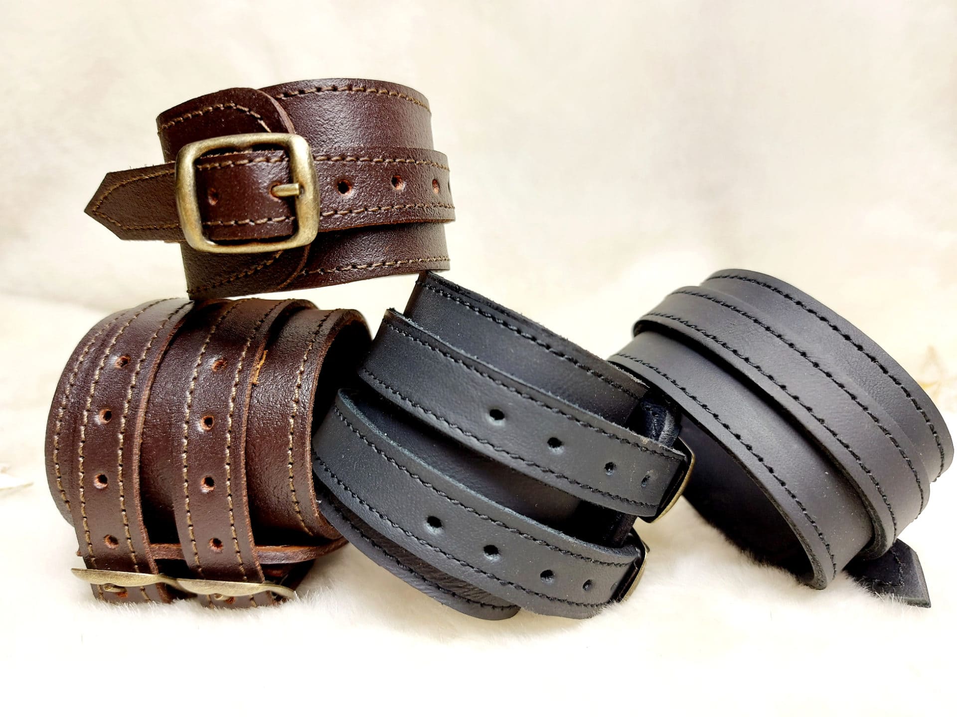Bracelet de force en cuir doublé, disponible en marron ou noir, avec 1 ou 2 lanière(s).