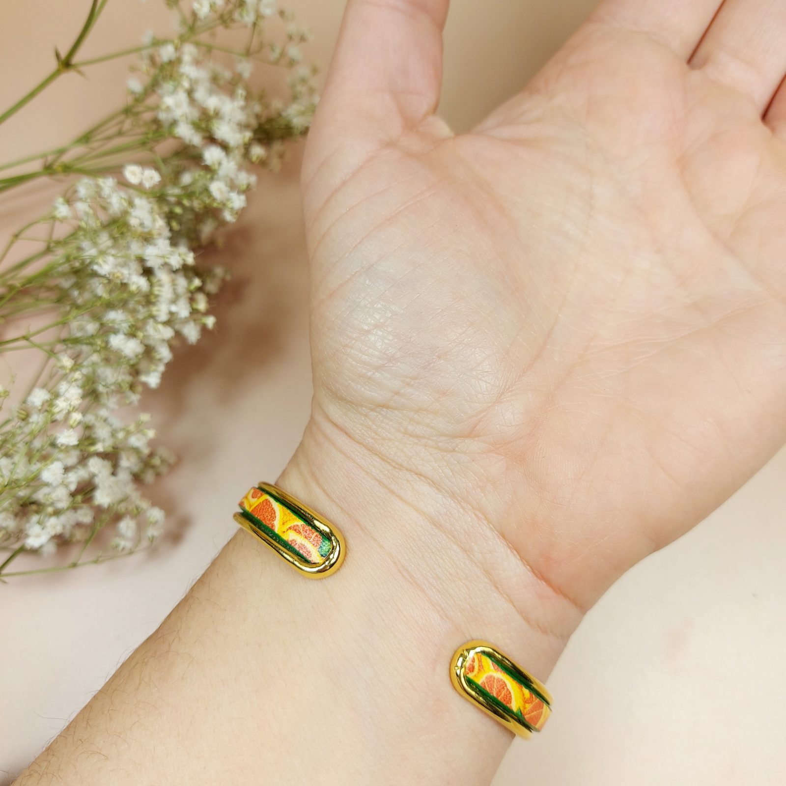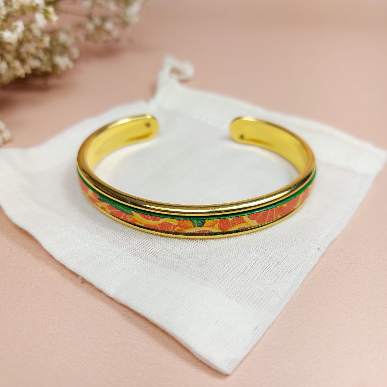 Bracelet jonc survitaminé avec son cuir orange. Hypoallergénique. Fabrication artisanale française. Facile à offrir.