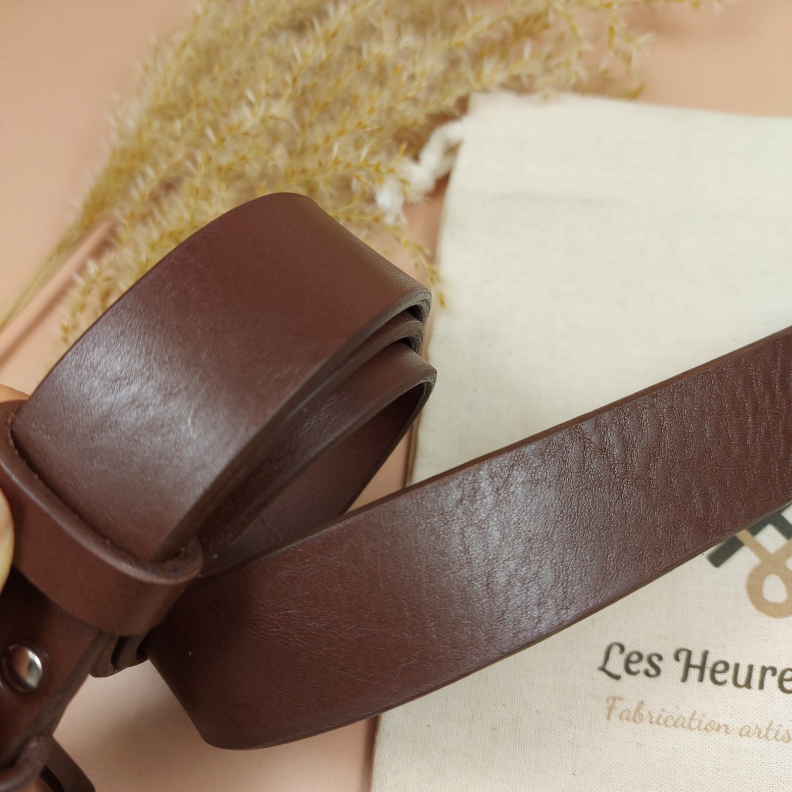 - Votre ceinture sera livrée dans un joli sac réutilisable en coton « Les Heures du Cuir »