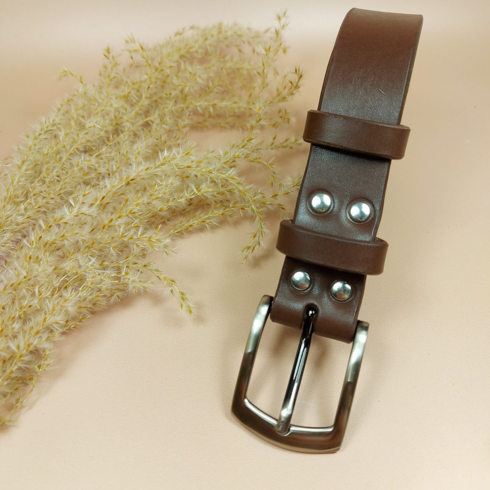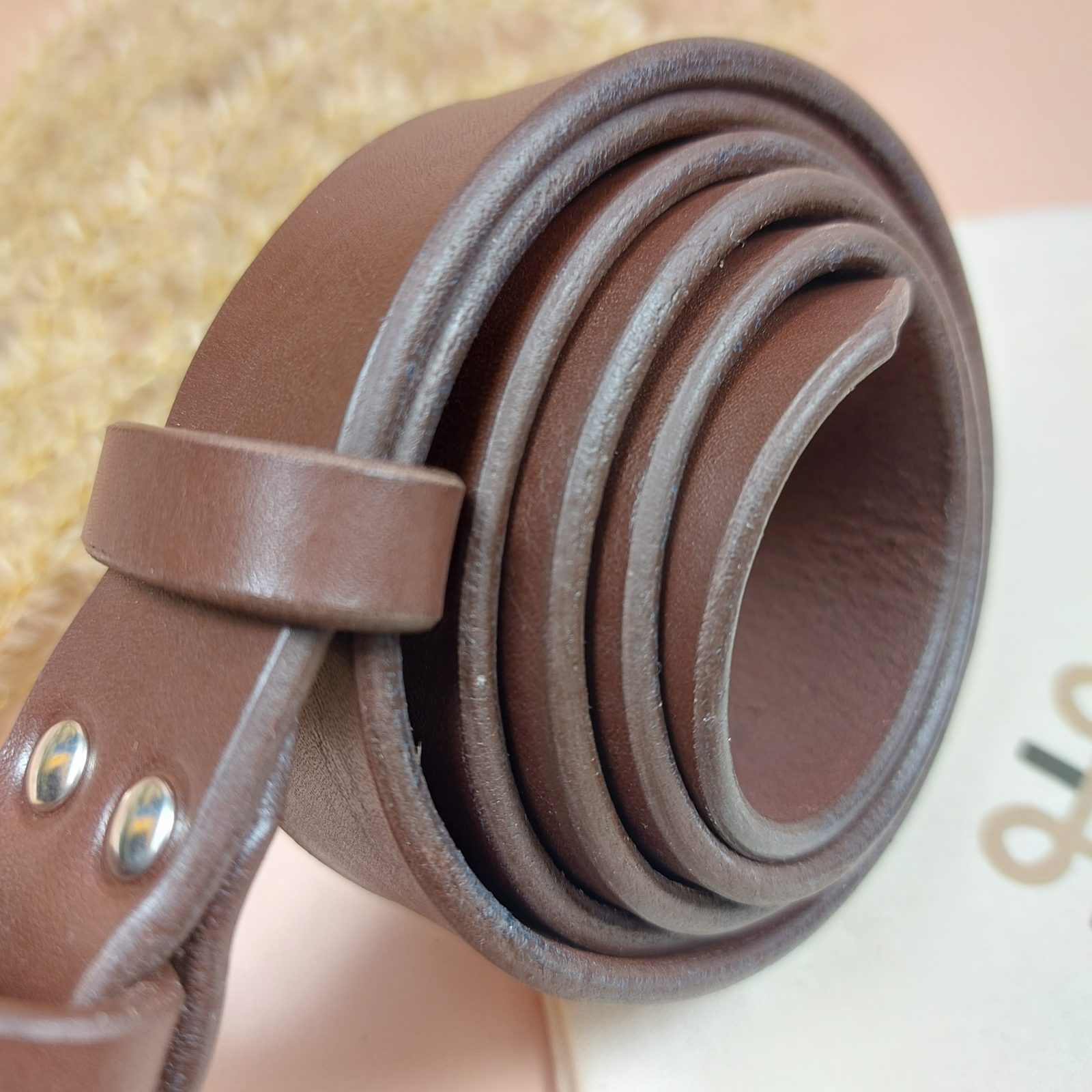 Ceinture artisanale en cuir marron lisse, réalisée sur-mesure. Pour les hommes et les femmes qui souhaitent consommer durable et local.