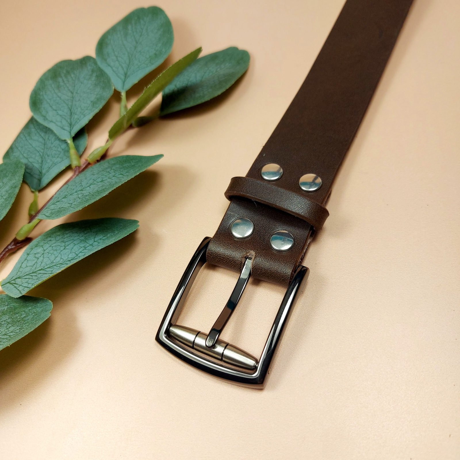 Ceinture artisanale en cuir marron foncé boucle rouleau