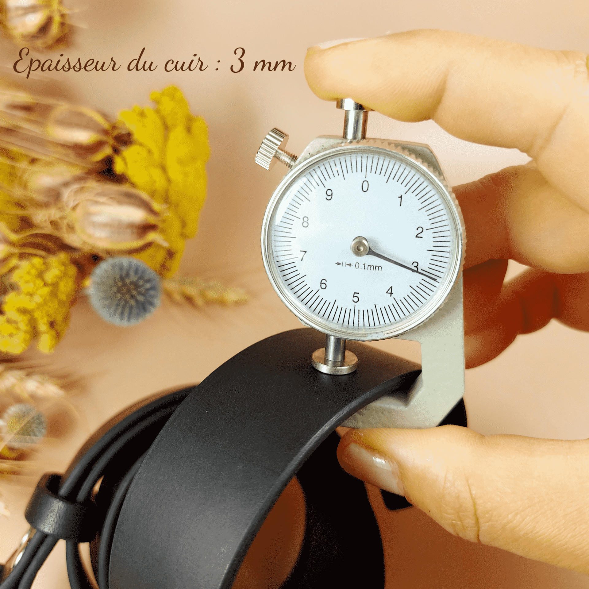 - Épaisseur du cuir : 3 mm
