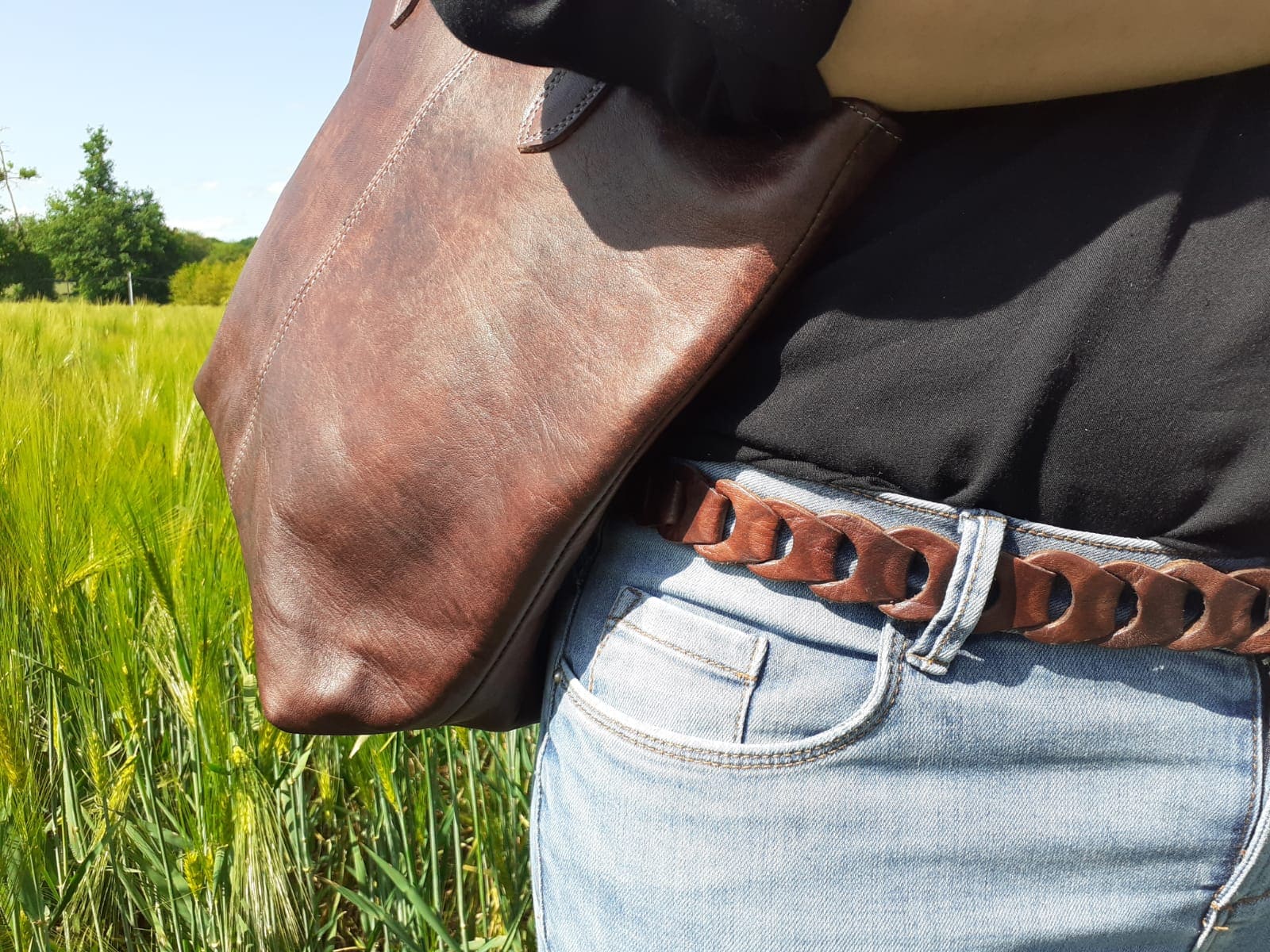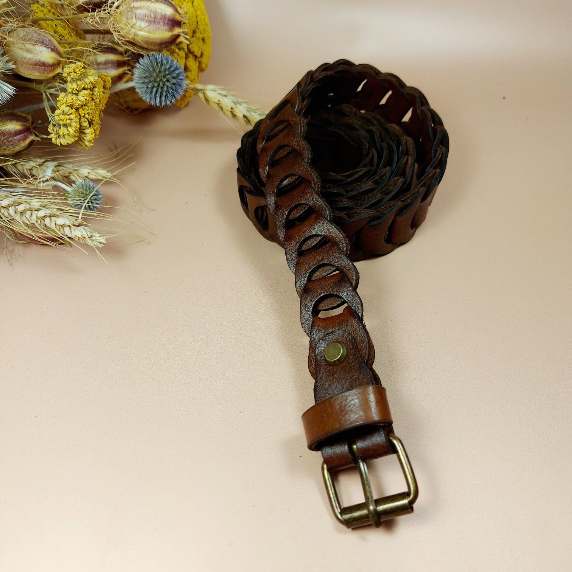 Ceinture maillons cuir marron – Souple et Ajustable