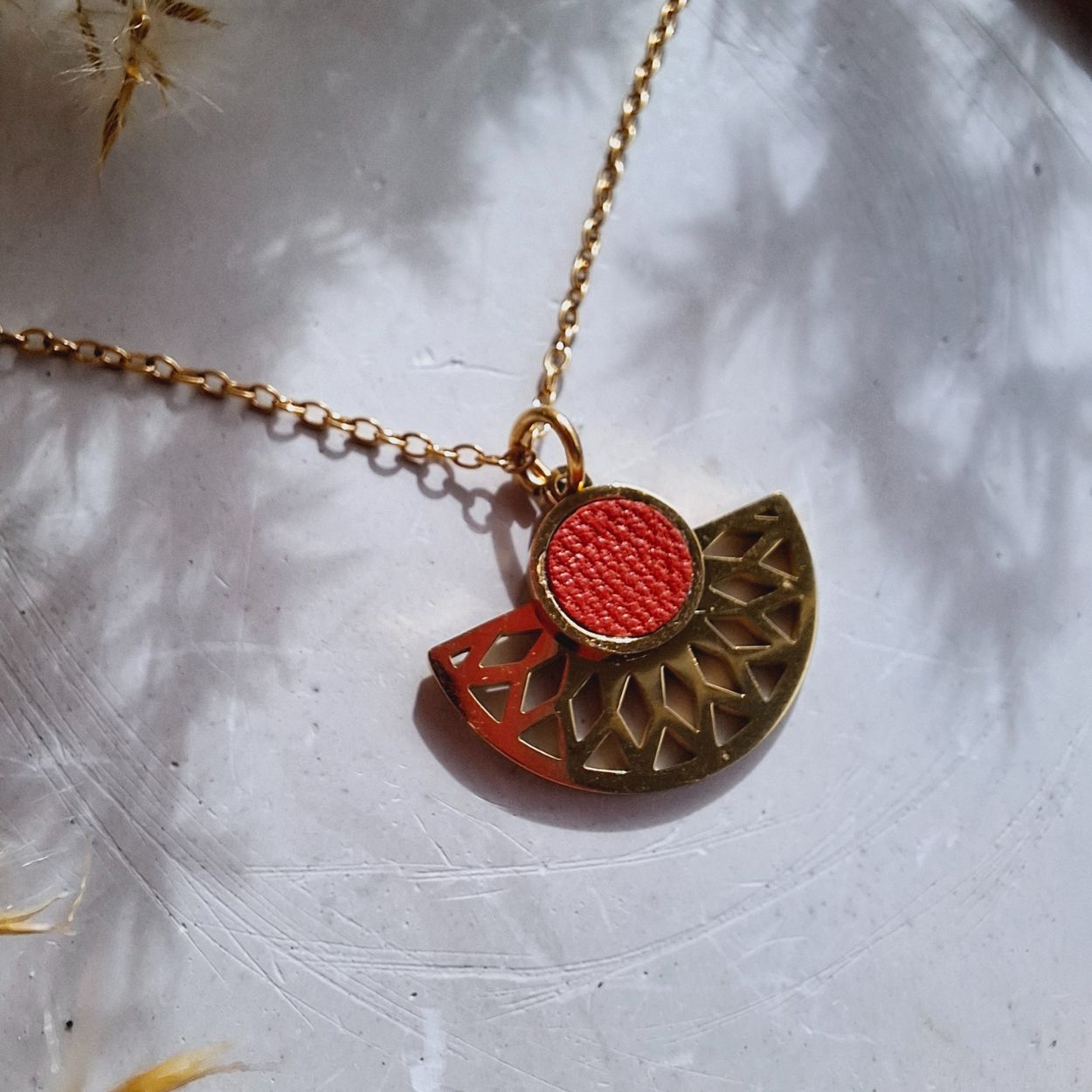 Un collier en acier inoxydable pour femme qui allie style et durabilité. Avec son pendentif orné d'une pastille de cuir véritable, il apporte une touche originale et minimaliste à vos tenues. Son acier inoxydable doré ne ternit pas, ne s’oxyde pas et résiste à l’eau : portez-le sans jamais vous soucier de l’enlever.