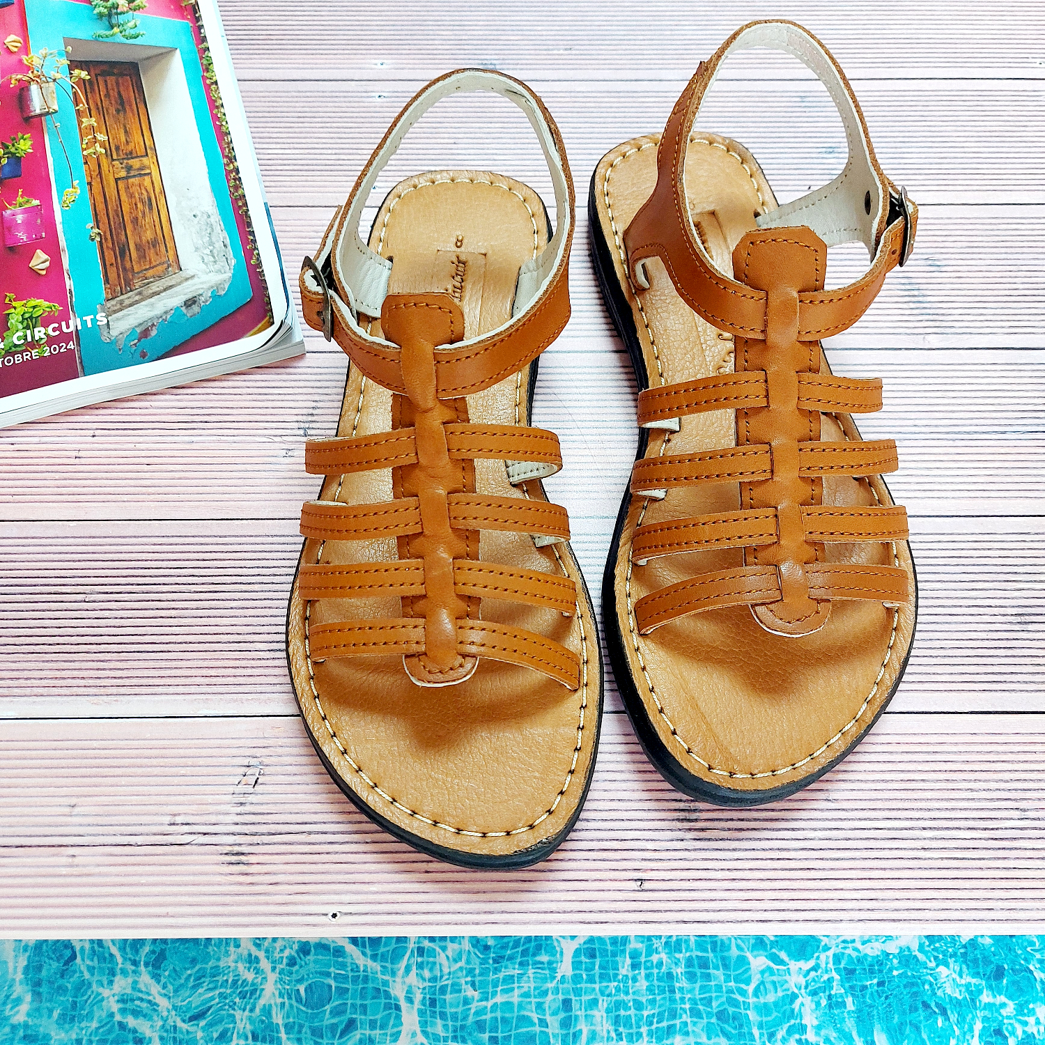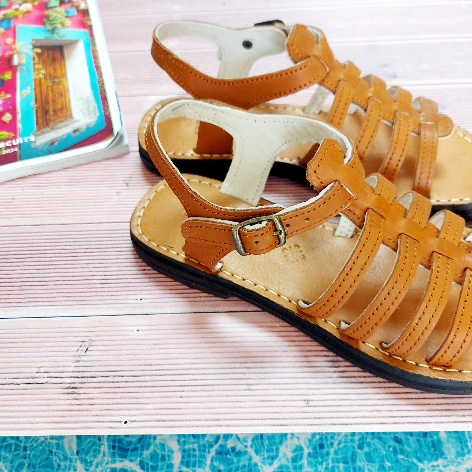1 avis pour Sandales plates à brides en cuir camel « Carlita »