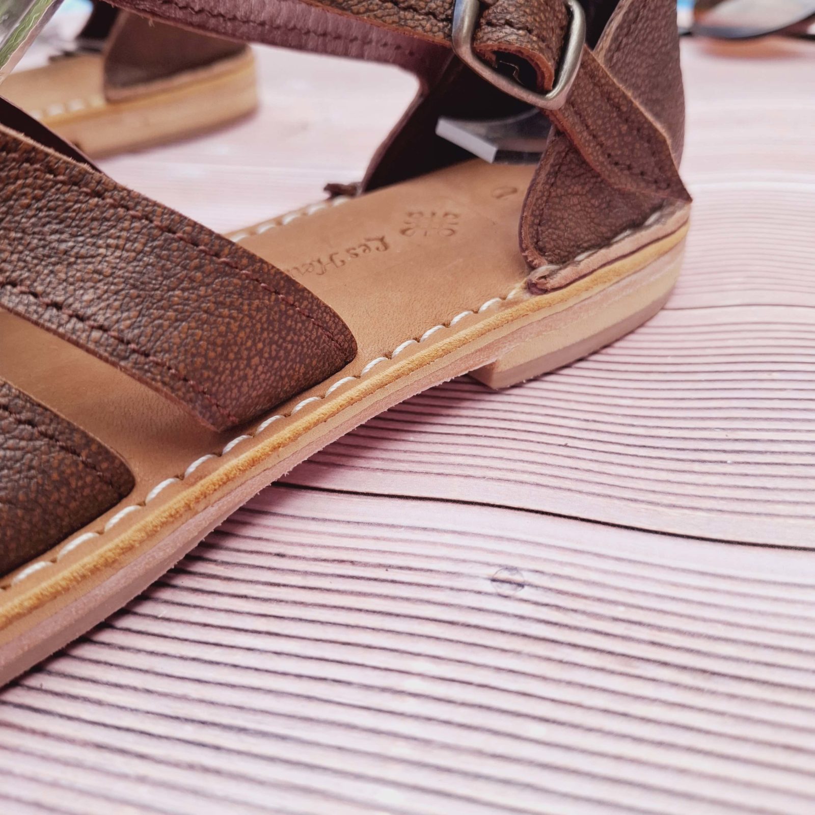 Chaque paire est faite à la main, avec un cuir de vachette souple qui s’adapte à vos pieds comme une seconde peau. Vous sentez la douceur du cuir, vous oubliez que vous portez des sandales.